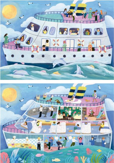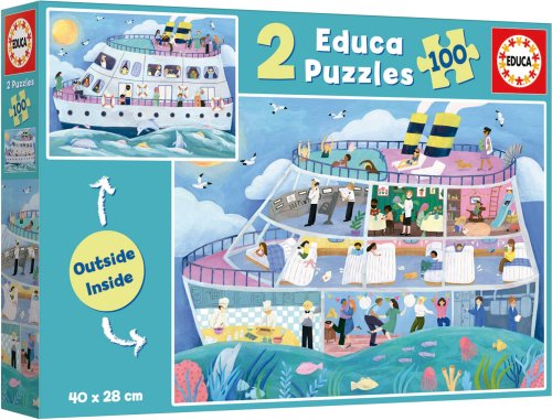 EDUCA Puzzle Outside,Inside Výletní loď 2x100 dílků