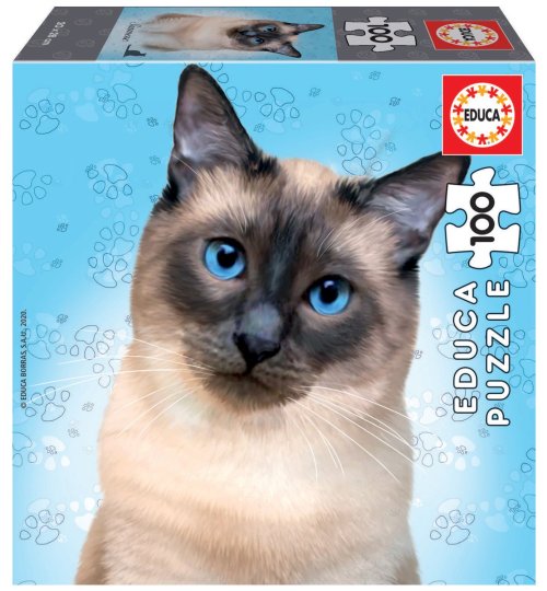 Puzzle s motivem známého kočičího plemene balené v malé čtvercové krabičce. Rozměr složeného puzzle cca 20 x 28 cm