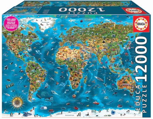 Přijměte výzvu! Poskládejte více než 10.000 dílků a objevte nejkrásnější zákoutí, památky a symboly celého světa v tomto unikátním díle od Adriana Chestermana. Součástí výrobku je i zvětšená předloha pro skládání - plakát o velikosti 65x47cm. Nápisy uvedené na puzzle jsou v angličtině. Rozměr složeného puzzle cca 214 x 157 cm