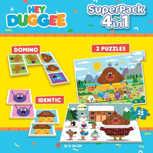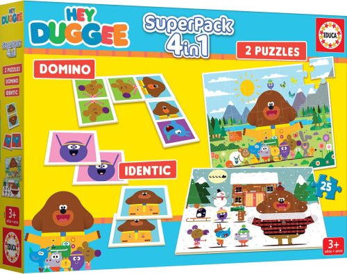 EDUCA SuperPack 4v1 - to je skvělá zábava nejen pro děti! V jedné krabici najdete dvě puzzle (každé s 25 dílky), domino a pexeso. Rozměr složeného puzzle cca 32 x 24 cm