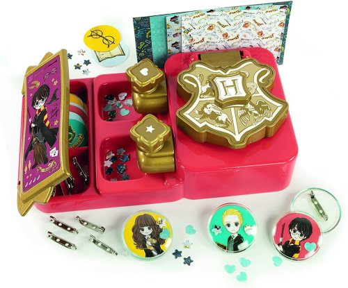 Vtvořte si pomocí Edukativní sada Harry Potter výroba odznaků své odznakys témetikou Harryho Pottera. Součástí sady je spidiální stroj na výrobu placek, ty je možné poté upevnit na dresy, bundy a batohy.