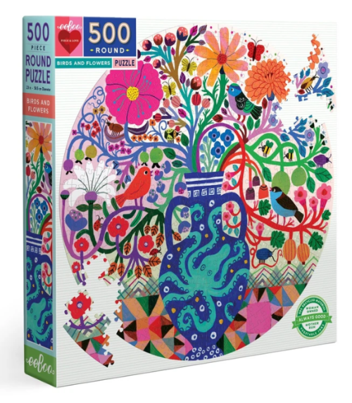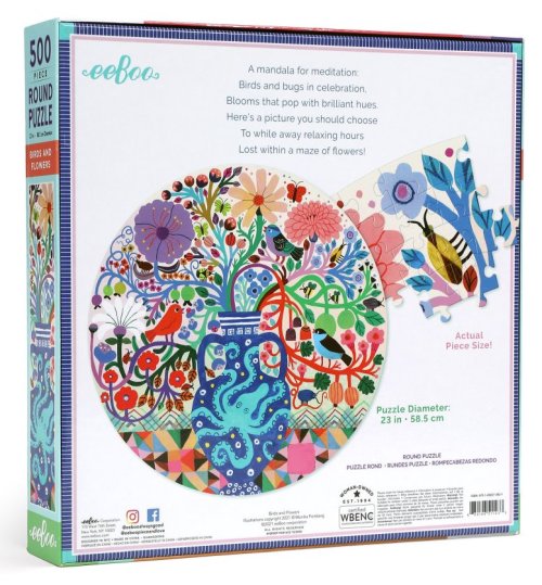 Výzva ale i příjemný relax. Poskládejte puzzle v netypickém tvaru a vznikne vám krásný vintage obraz s ptáčky a květinami ve váze. Poskládat obraz z tolika dílků bude bavit starší děti i dospělé. Hotový výtvor vám může zdobit zeď v jakémkoli pokoji. Puzzle od amerického výrobce EEBOO. Rozměr složeného puzzle cca průměr 58,5 cm