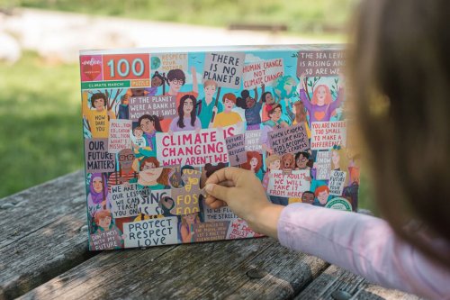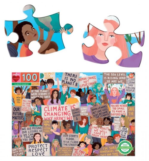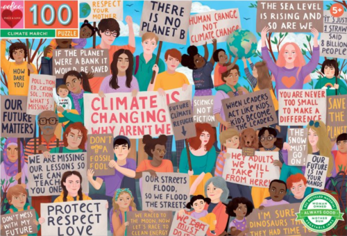 Originální puzzle, které znázorňuje protest za lepší klima. Materiál: vyrobeno z 90% recyklovaného šedého kartonu a tišteno inkousty na rostlinné bázi. Puzzle od amerického výrobce EEBOO. Vhodné pro děti od 5 let. Rozměr složeného puzzle cca 68,5 x 45,7 cm