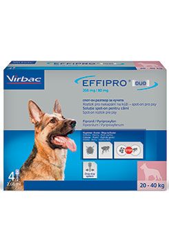 Spot-on na blechy a klíšťata pro psy 20-40 kg K použití u psů starších 10 týdnů Působí po dobu 7 týdnů proti blechám, 12 týdnů jejich vývojovým stádiím a až 4 týdny proti klíšťatům