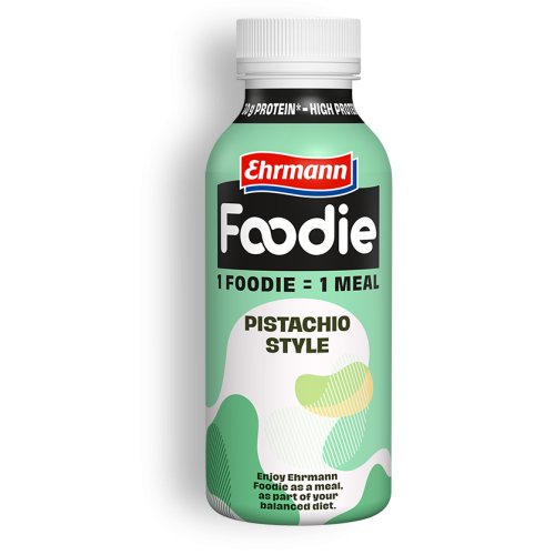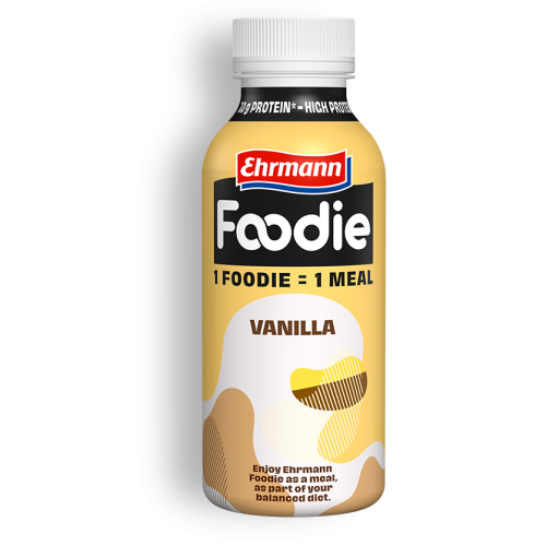 1 Foodie = 1 jídlo. Ehrmann Foodie je lahodné jídlo v podobě nápoje s důležitými živinami, které vaše tělo potřebuje. Láhev o obsahu 400 ml obsahuje 30 g bílkovin, neobsahuje laktózu, lepek a přidané cukry*.