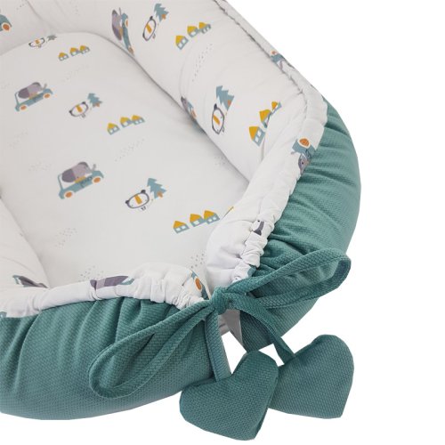 Multifunkční hnízdo pro dítě s okouzlujícím vzhledem poskytuje bezpečnost a pohodlí pro spící děti. Skvělá alternativa k tradičním peřinkám a zavinovačkám. Praktičnost hnízda znamená, že může být použit také jako podložka na hraní. Hnízdo má vysoké okraje, které usnadňují položení dítěte na boku, což je důležité zvláště, když dítě má reflux.
