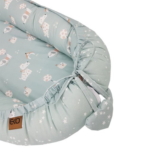 Multifunkční hnízdo oboustranné pro dítě s okouzlujícím vzhledem poskytuje bezpečnost a pohodlí pro spící děti. Skvělá alternativa k tradičním peřinkám a zavinovačkám. Praktičnost hnízda znamená, že může být použit i jako podložka na hraní. Hnízdo má vysoké okraje, které usnadňují položení dítěte na boku , což je důležité zejména, když dítě má reflux.