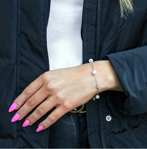 Elegantní stříbrný náramek s perličkami AGB411/21P