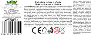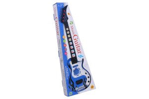 Elektrická kytara. Rozměry 18x5,5x54 cm. Světelné a zvukové efekty. 3xAA baterie nejsou součástí. Přepínač ON/OFF vedle potenciometrů. Oba potenciometry světelné a zvukové efekty.