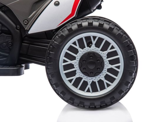 Po zapnutí se ozve zvuk motoru a po sešlápnutí plynového pedálu se motorka rozjede. Velká kola s terénním vzorkem zajišťují stabilitu při jízdě venku a tvarované sedadlo zajišťuje pohodlí a bezpečnost nejmenších uživatelů. Ocelové osy kol zaručují stabilitu a odolnost vozidla. Součástí je také klakson, díky kterému bude hraní ještě zábavnější.