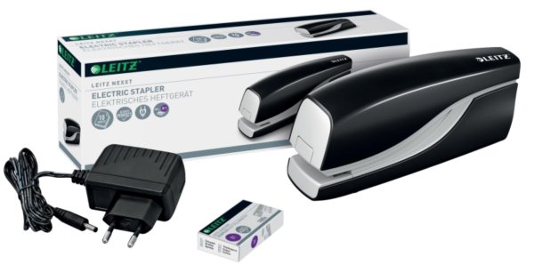 Kompaktní elektrická sešívačka pro moderní, pohodlné sešívání Uzavřené sešívání, přední plnění drátků Součástí je adaptér a startovací balení drátků (1000 ks) Rozměry: 4,9 x 5,6 x 15,5 cm (š x v h), …