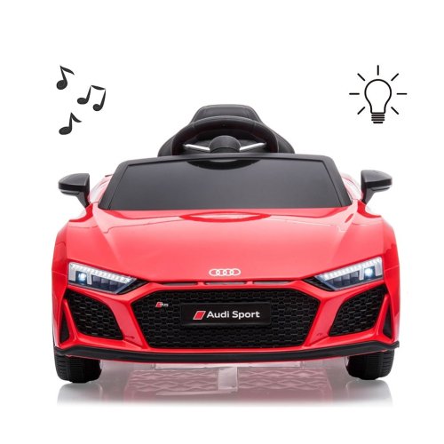 Po sešlápnutí plynového pedálu tohoto úžasného Audi R8 Spyder se vozidlo rozjede a zároveň se rozsvítí přední světlomety díky dvěma motorům. Velká, široká EVA kola s běhounem a sportovními ráfky zajistí mobilitu při výletech mimo domov, zatímco profilované sedadlo poskytne dítěti pohodlí a bezpečnost. Ocelové nápravy kol zajišťují stabilitu a odolnost vozidla. Zábava nekončí: hudební funkce na kokpitu, USB port, Bluetooth, přehrávání hudby, ovládání hlasitosti +/- , 4 písně po stisknutí tlačítka na volantu vlevo, zvuk klaksonu po stisknutí tlačítka na pravé straně volantu – to vše činí hru ještě zajímavější!
