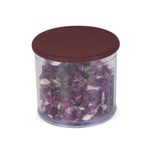 Kompaktní a výkonný elektrický sekáč 2 v 1 v elegantní bordó barvě je praktickým pomocníkem do každé kuchyně. Díky dvojité čepeli zvládne snadno nasekat zeleninu, bylinky i ořechy. Víko umožňuje použít nádobu i k přímému skladování potravin.