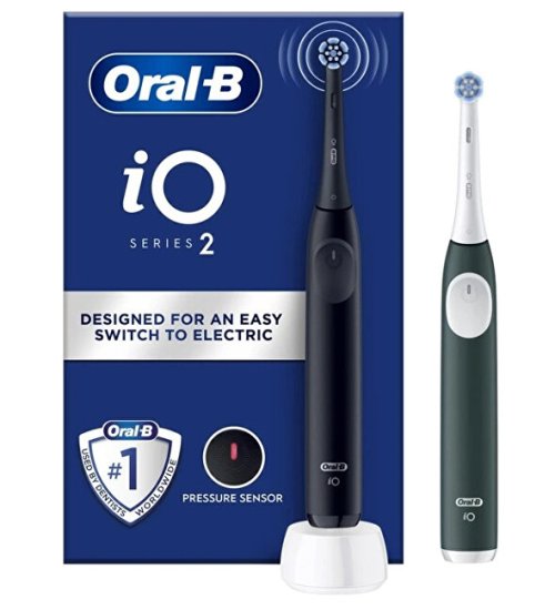 Dvojbalení elektrických zubních kartáčků Oral-B iO Series 2 v elegantních barvách Night Black a Forest Green. Kartáčky využívají inovativní magnetickou technologii iO a ikonickou kulatou kartáčkovou hlavu pro efektivní, ale šetrné čištění. Jsou vybaveny 3 úrovněmi intenzity, chytrým tlakovým senzorem a 2minutovým časovačem, který pomáhá dodržet doporučenou dobu čištění.