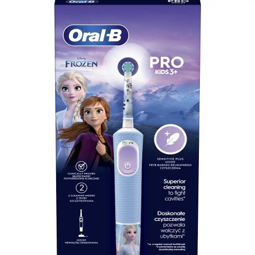 Dejte svým dětem tu nejlepší zubní péči s elektrickým kartáčkem Oral-B Vitality Pro Kids Frozen. Tento speciálně navržený dětský zubní kartáček kombinuje účinné čištění s pohádkovým designem, který děti milují. Díky oscilačně-rotační technologii zajišťuje šetrné a důkladné odstranění zubního plaku, zatímco motivuje děti k pravidelné ústní hygieně prostřednictvím interaktivní aplikace a samolepek.