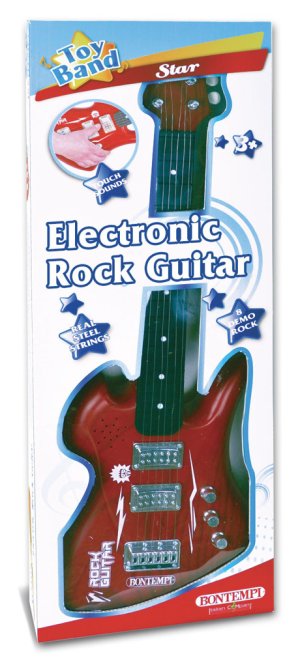Elektronická rocková kytara s 6 kovovými strunami, s rockovým zvukem, 8 demo písní.
