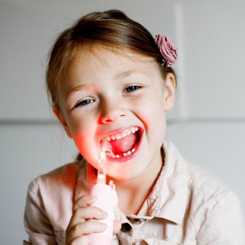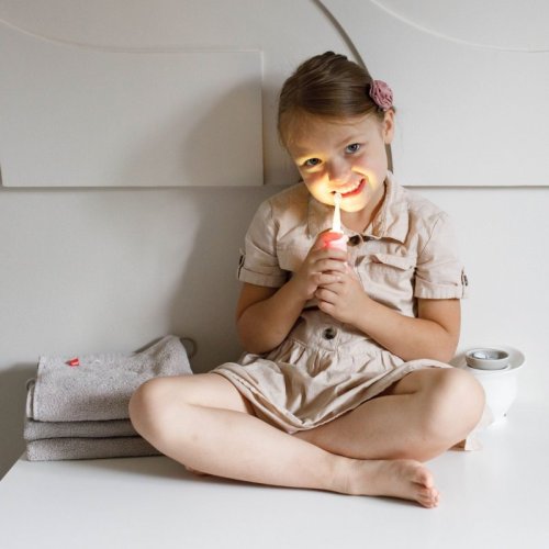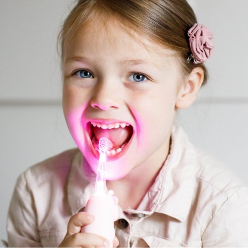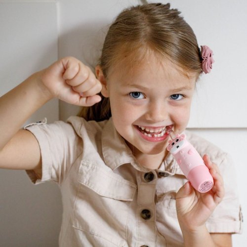 Sonický zubní kartáček pro děti v podobě roztomilé žirafky podporující návyk správného čištění již od útlého věku.