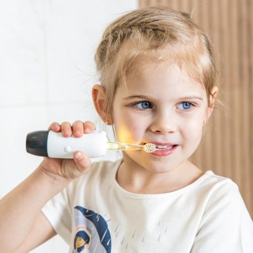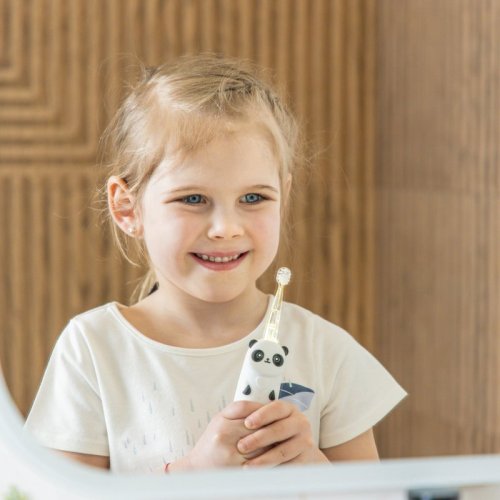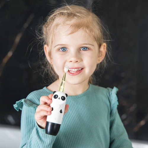 Sonický zubní kartáček pro děti v podobě roztomilé pandy podporující návyk správného čištění již od útlého věku.