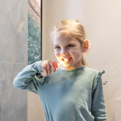 • čistící hlava s měkkými štětinkami je vyrobena z DuPont materiálu, který je pevný a odolný proti opotřebení, má zaoblené konce, chrání dásně dítěte a účinně čistí zuby