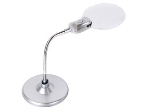 Ohebná kovová lupa se stabilní základnou a 2 LED diodami nabíjenými bateriemi.