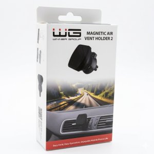 Magnetický držák mobilních zařízení značky WG k upevnění do ventilační mřížky vás osloví minimalistickým designem.Otočný o 360°.