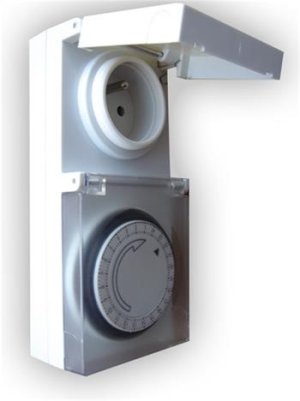 rozpětí 24hod., min. časový úsek 15min. mechanický dětská pojistka 230V/16A, 50Hz kryt zásuvky + gumové těsnění vodě odolná ochrana IP44