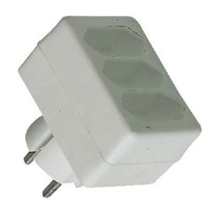 Roztrojka 230V je vybavena 1x kulatou zástrčkou a 3x plochými zásuvkami.