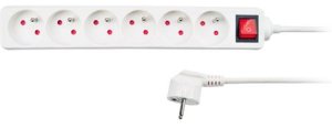 počet zásuvek: 6 průřez vodičů: 3 x 1mm2 typ kabelu: H05VV-F3 lomená vidlice barva: bílá délka: 1,5m 230V/10A vypínač