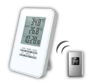 měření vnitřní teploty: -9°C až +50°C měření venkovní teploty: -50°C až +70°C paměť minimálních a maximálních teplot 1 bezdrátový senzor (součástí balení) čas, budík napájení: hlavní jednotka: 2 x AAA …