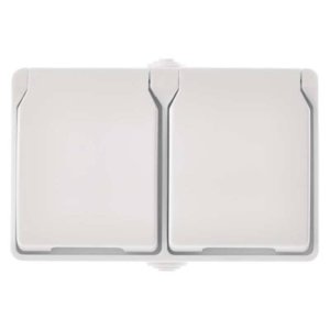 zásuvka dvojnásobná s ochrannými kontakty a víčky s propojením design: FRENCH typ: 250 V~/16 A max. barva: bílá způsob montáže: na stěnu krytí: IP44