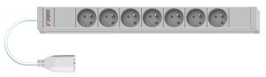 Základní PDU lišta, zásuvky UTE, přívod 3m Vlastnosti: *7 UTE zásuvek, max. 16A/230VAC *Zásuvky s orientací 45° s dětskou pojistkou *Barva plastových dílů podobná světle šedé RAL7035 (na vyžádání i černá …