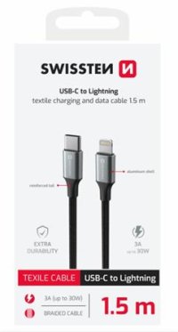 SWISSTEN USB na Lightning 1 m; Datový a nabíjecí USB na Lightning kabel vyrobený z termoplastického polyuretanu ( TPU ) se vyznačuje vysokou pružností a ohebností, ale zároveň pevností a odolností.