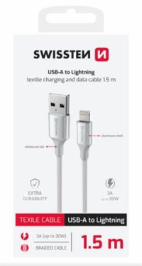 SWISSTEN USB na Lightning 1,2 m; Datový a nabíjecí USB na Lightning kabel dlouhý 1,2 m.