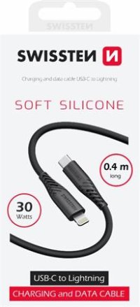 SWISSTEN SOFT SILICONE USB-C na Lightning 40 cm; Datový a nabíjecí USB-C na Lightning kabel podporuje kromě přenosu dat rychlostí 480 Mb/s také nabíjení proudem až 3 A a lze ho využít i pro technologii …