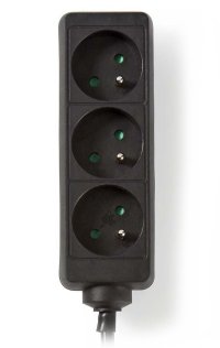Nedis ESOC350E1BK; Tato prodlužovací zásuvka se zvýšenou ochranou kontaktů je vhodná k rozdělení zásuvky do tří napájecích bodů.