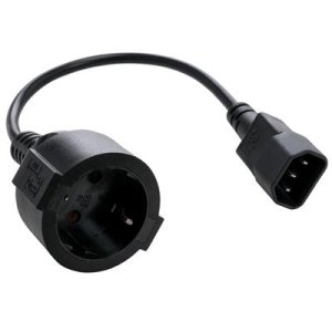 Kabel s konektorem UPS C14 a standardní zásuvkou Schuko.