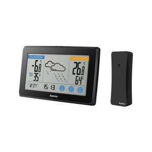 - 2dílný set: základna + bezdrátový senzor - pro digitální zobrazení vnitřní a venkovní teploty a vlhkosti vzduchu, času, data, dne v týdnu, fáze měsíce a předpovědi počasí - čas řízený rádiovým signálem …
