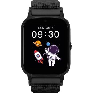 Chytré hodinky pro děti GARETT Kids Tech 4G black vel PN TECH_4G_BLK_VEL Vodotěsné pouzdro s certifikací IP67 Snadné zapínání řemínku Připojení 4G LTE Slot pro SIM kartu GPS, LBS, WiFi lokalizace Tlačítko …