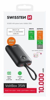SWISSTEN VOLTBOX 35 W 10 000 mAh – myslete na energii na cestách S powerbankou SWISSTEN VOLTBOX 35 W 10 000 mAh máte zdroj energie pro vaše zařízení kdykoli a kdekoli po ruce.