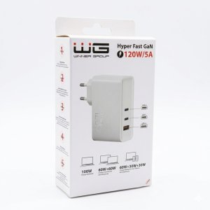 WG síťová nabíječka do 230V zásuvky pro rychlé a spolehlivé nabíjení vašich mobilních zařízení.Tato nabíječka s max. výkonem 120 W dokáže nabíjet až tři zařízení současně vč. notebooků.