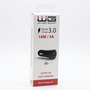Jednoduchá a rychlá nabíječka ve značce WG do 12/24V zásuvky vašeho vozu s jedním USB-A slotem.Slot této 18W nabíječky je ve standardu rychlonabíjení QC 3.0, výstupní proud jsou 3 A.