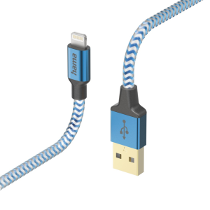 Kabel Premium jeans (denim) 8-pin s kovovými konektory, 2 m, modrý *Ideální pro připojení nebo nabíjení Apple iPhone *Pozlacené konektory pro spolehlivé připojení *Stylový design s bavlněným opletením …