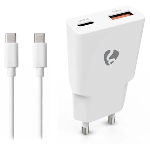 Kompaktní duální GaN nabíječka s výkonem 20W pro rychlé nabíjení dvou zařízení současně.