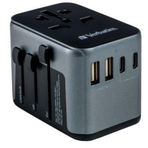 Univerzální adaptér Verbatim GaN III univerzální cestovní adaptér UTA-05, 2xUSB-C PD 65W a QC4+/2xUSB-A, černá Typ přístroje: Nabíječka Typ nabíječky: Do sítě Určení: Univerzální Integrovaný kabel: Ne …