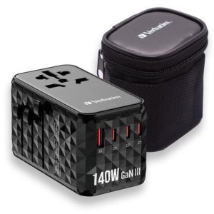 Univerzální adaptér Verbatim GaN cestovní adaptér GNC-140, 2xUSB-C PD 140W, 1xUSB-C PD 20W, 1xUSB-A QC 3.0, šedá Typ přístroje: Nabíječka Typ nabíječky: Do sítě Určení: Univerzální Integrovaný kabel: …