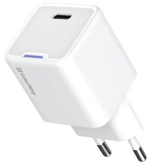 ColorWay CW-CHS059PD-WT; Kompaktní a vysoce efektivní USB-C nabíječka s technologií Gallium Nitride (GaN) pro rychlé nabíjení moderních zařízení.