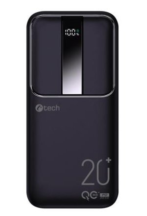 C-TECH Powerbanka 20000mAh, Li-Pol, 22,5W, USB-C/USB-A/micro USB/PD/Quick charge/display