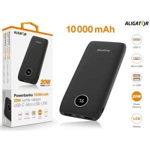 Powerbanka ALIGATOR PBPD10BK Určení pro mobilní telefony Typ výstupního konektoru USB-C Typ vstupního konektoru Micro USB, USB-C Integrovaný kabel Počet výstupů 3 Výstupní výkon 20 W Kapacita 10000 mAh …