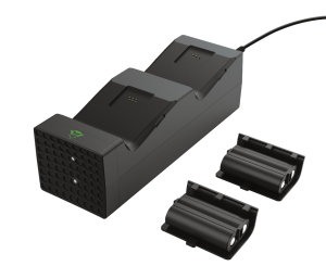 Nabíjecí stanice pro Xbox Series X/S Trust GXT 250 Duo Možnost současného nabíjení 2 ovladačů Dvě dobíjecí baterie o kapacitě 1200 mAh součástí LED indikátory stavu nabití Napájení přes USB port konzole …