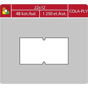 Cenové etikety určené na označování výrobků cenou, datem (např. minimální trvanlivostí), případně dalšími doplňujícími údaji Rozměry: 22,0 x 12,0 mm Barva: bílá Prodáváme po jednom kotoučku, který obsahuje …
